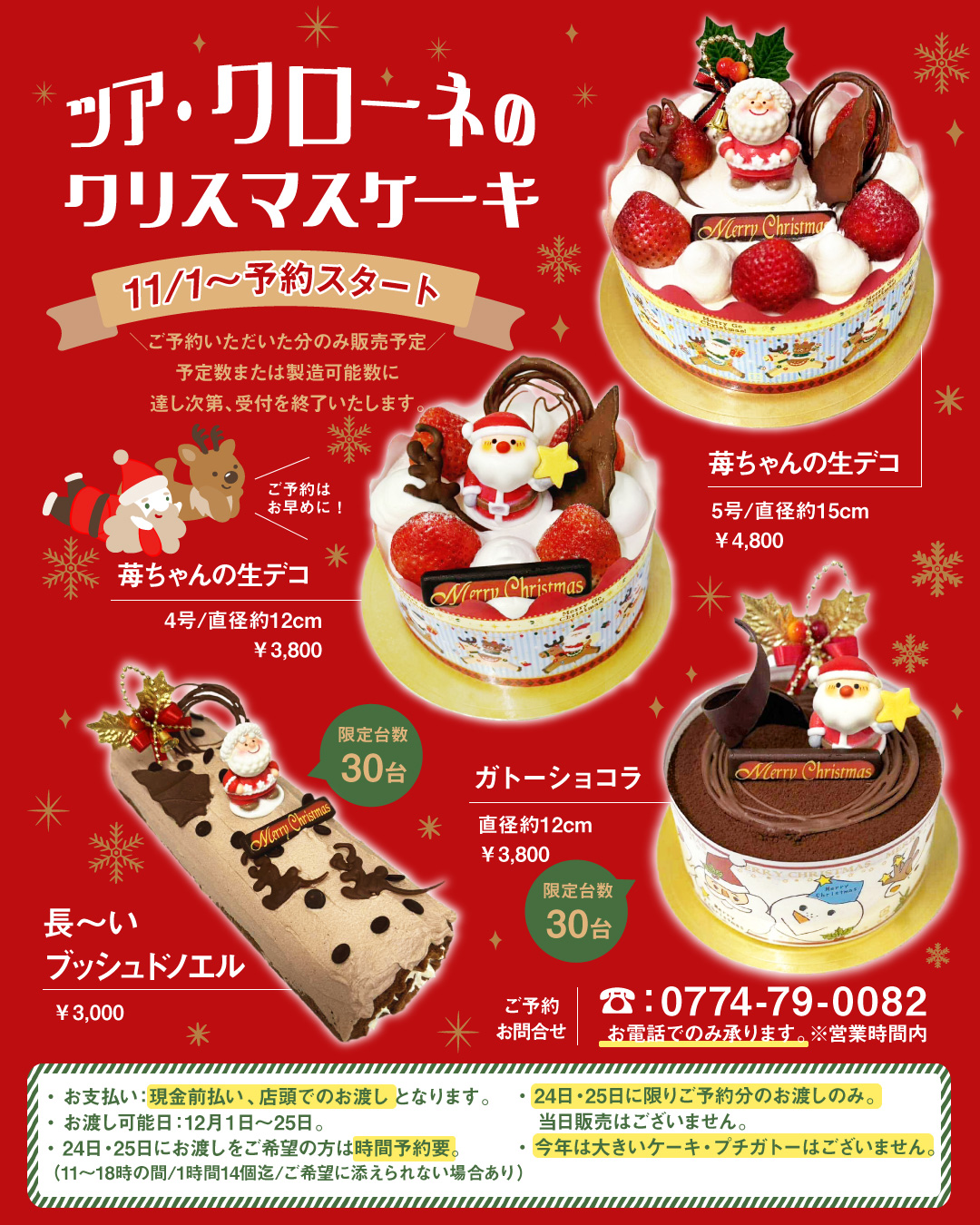 ご予約はお早めに!|11月1日(土)11時よりクリスマスケーキの予約受付を開始。